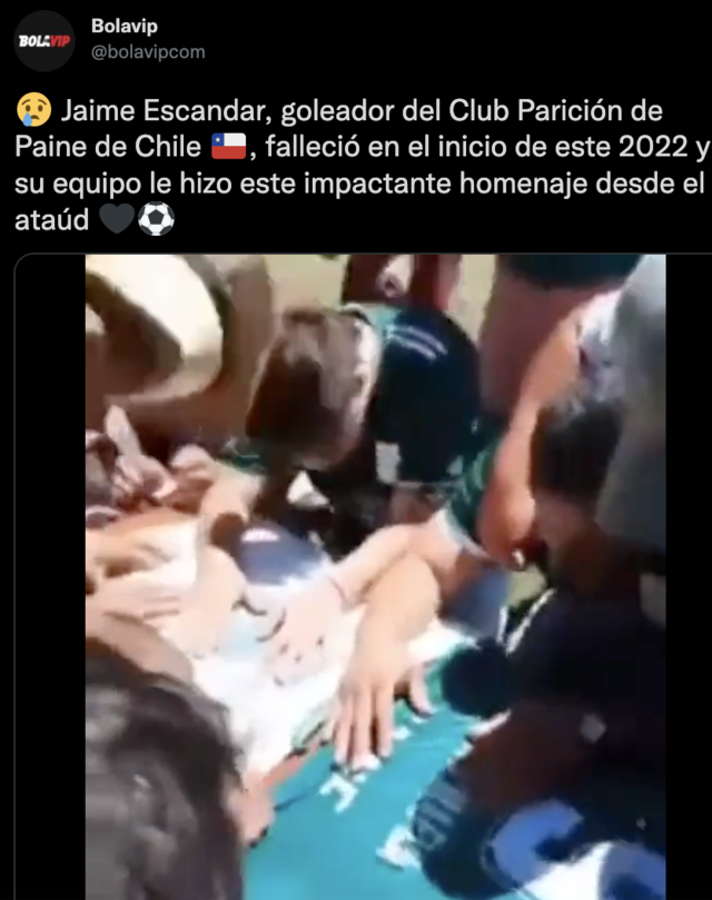 사망한 선수의 이름은 자이메 에스칸데르. 2021년 12월 31일에 숨을 거둔 그는 아파리시온 데 파이네라는 지역 팀의 공격수였다.
