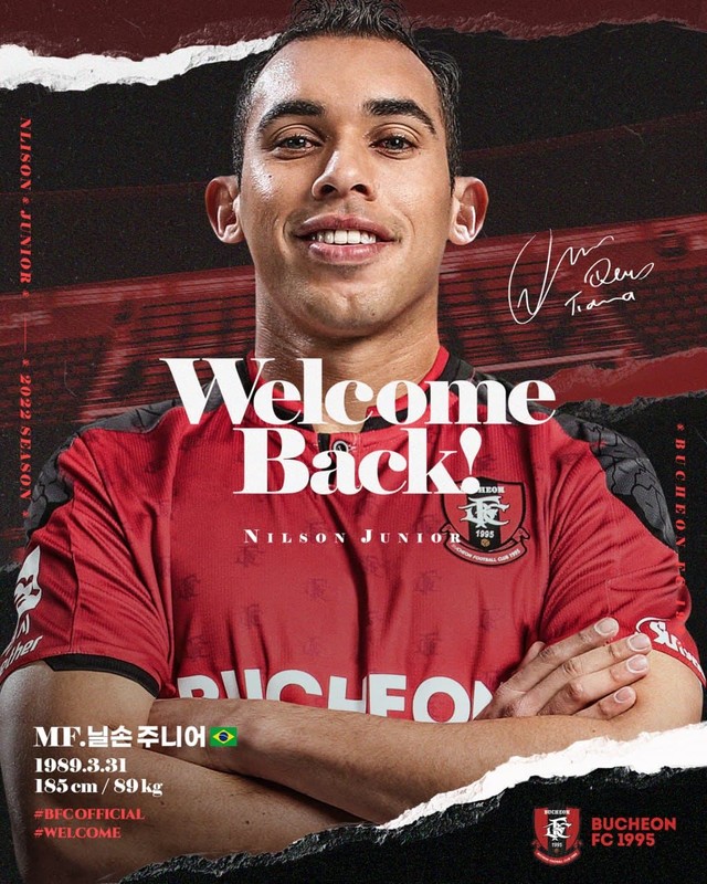 부천은 보도자료를 통해 수비수와 미드필더를 고루 소화할 수 있으며 득점력까지 갖춘 브라질 출신 멀티 플레이어 닐손 주니어를 영입했다고 밝혔다. 지난해 FC 안양 소속으로 뛴 닐손 주니어는 과거 부천 FC에서도 활약한 바 있어 팬들에게 낯익은 선수다. 2017년부터 3년간 부천에서 뛰며 99경기에서 15골 4도움을 기록하는 등 우수한 성과를 낸 바 있다.