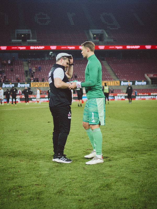 노이어는 쾰른을 지휘하는 슈테펜 바움가르트 감독에게 향했고, 그가 쓴 헌팅캡에 눈독을 들였다. 자신의 유니폼을 벗어 건넨 노이어는 마침내 바움가르트 감독의 모자를 ‘득템’하는 데 성공했다.