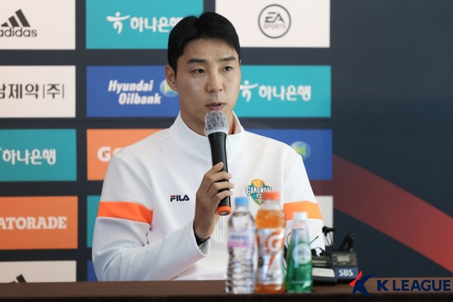 이정협은 17일 오후 부산 송정호텔에서 열린 K리그 전지훈련 미디어 캠프에 참석해 새 시즌에 대비하고 있는 근황을 전했다. 이정협은 이날 기자회견에서 최 감독, 그리고 팀 동료인 서민우와 함께 자리했다.