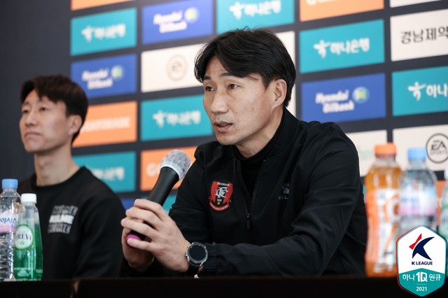 이 감독은 18일 오후 부산 송정호텔에서 벌어진 하나원큐 K리그 2022 전지훈련 미디어 캠프 기자회견에 참석했다. 이 감독은 팀의 주장 조수철, 그리고 베테랑 공격수 한지호와 함께 기자회견에 임해 새 시즌에 임하는 각오를 전했다.
