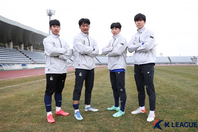 (맨 오른쪽이 서울 이랜드 신입 수비수 박준영, 바로 그 옆이 인터뷰의 주인공인 공격수 박준영이다.)
