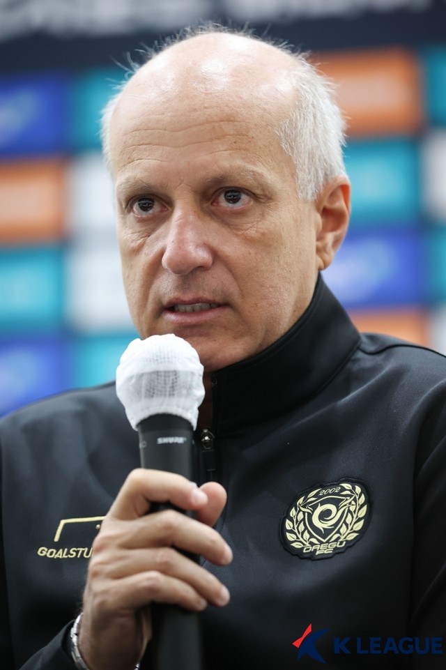 이어 가마 감독은 “조광래 대구 사장님과는 국가대표팀과 경남에서 일하는 영광을 누렸다. 많이 배웠고, 함께 소통했다”라면서 “선수들이 말했듯, 우승을 준비한다. 부담이나 압박 같은 거는 크게 와 닿지 않는다. 여러 나라를 다니며 우승을 한 경험이 있다. 성장 중인 대구가 어떤 목표를 향해 걸어가는지, 승리에 대한 갈급이 얼마나 큰지 알고 있다”라고 말했다.