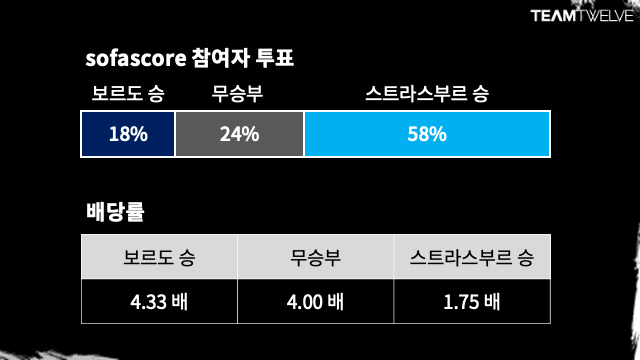 이번 라운드에서 보르도가 상대한 스트라스부르는 이전 시즌(2020-2021)에 리그 15위였던 팀이다. 당시 보르도는 12위였다. 이번 시즌 두 팀의 상황은 완전히 다르다. 스트라스부르는 리그 4위로 보르도와 격차가 크다. 이 둘의 위치만 보더라도 누구나 스트라스부르의 손을 들어줄 수밖에 없다. 실제로도 그랬다. 해외 축구 데이터 사이트 소파 스코어(sofascore)의 참여자 투표에서 보르도의 승리를 예측한 팬들은 18%에 불과했다. 반면 스트라스부르의 승리를 예측한 비율은 58%나 되었다. 배당률도 마찬가지다. 보르도 승에 베팅 시 4.33배의 배당을, 스트라스부르 승에 베팅 시 1.75배의 배당을 받을 수 있었다. 누가 봐도 객관 전력에서 열세였던 보르도였다.