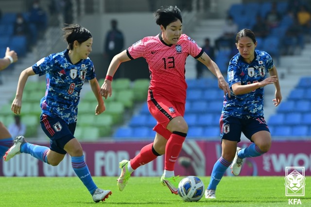 1-0으로 전반이 끝난 가운데 일본은 리코를 빼고 다나카 미나를 투입해 변화를 줬다. 지소연을 필두로 공격을 풀어가던 한국은 후반 27분 최유리를 빼고 이민아를 집어넣었다.