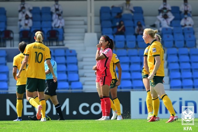 이후 한국은 지소연이 단독 드리블 돌파를 몇 차례 시도하며 공격을 풀어나가고자 했다. 그러나 혼자로는 역부족이었다. 호주가 이 기회를 틈타 선제골을 집요하게 노리며 한국 골문을 두드렸다. 그러나 한국은 후반 35분 호주 코너킥 상황에서 방향만 바꾸는 펀칭을 선보이며 위기를 넘겼다.