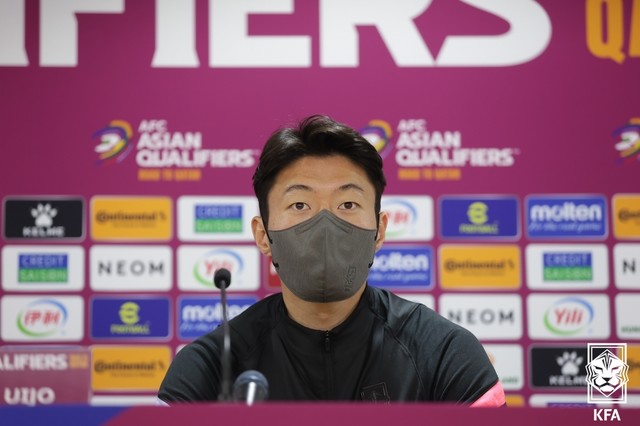 31일, 경기 하루 앞두고 결전지 라시드 스타디움에서 공식 사전 기자회견이 열렸다. 한국은 벤투 감독과 황의조가 참석했다.