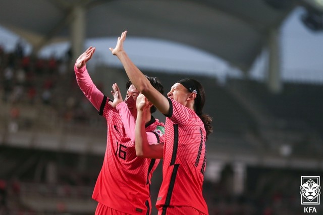 벤투호는 몰도바전과 레바논전에서 좋은 성과를 낸 4-4-2 시스템을 가동했다. 전방은 황의조와 조규성 투톱이 선다.