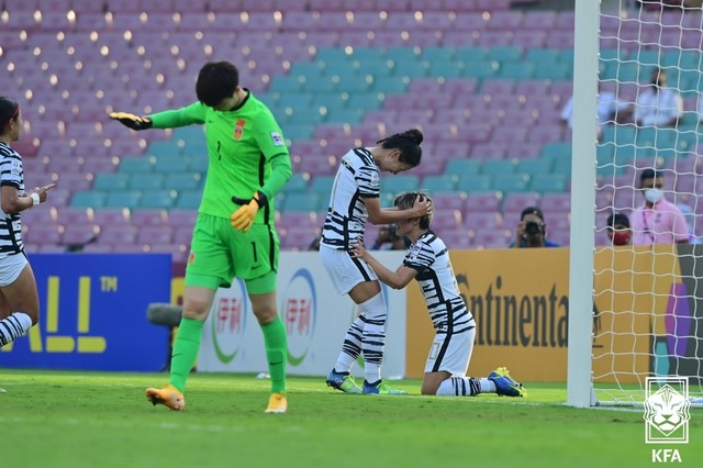 한국은 전반 26분 최유리가 이금민의 크로스를 오른발로 밀어 넣으면서 선제골을 터뜨렸다. 전반 추가시간에는 페널티킥 키커로 나선 지소연이 깔끔한 마무리 슛으로 추가 득점해 두 골 차로 앞서나갔다.