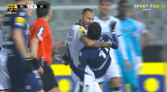 이는 당연히 제지당했다. 벨레넨스스 선수들이 다가와 콰레스마를 제지했고, 양 팀 선수들이 맞붙으며 잠시 소란이 벌어졌다. 주심은 원인을 제공한 콰레스마에 경고를 꺼냈다.