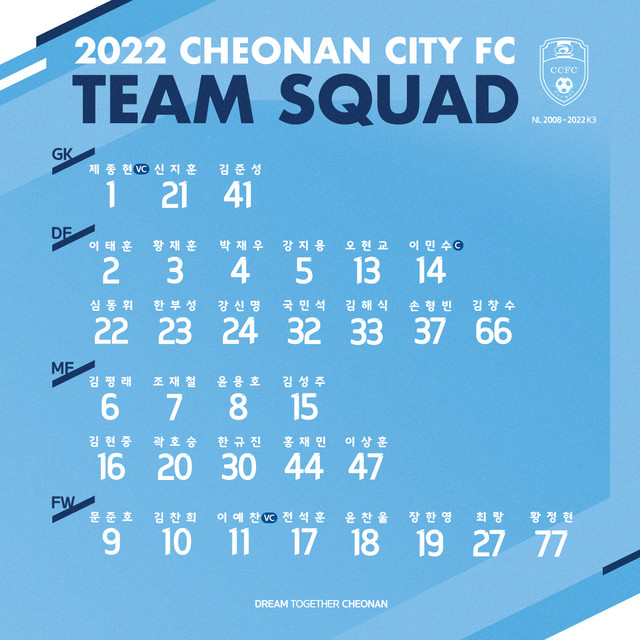 천안시 축구단이 2023시즌 K리그 진출에 앞서 K3 마지막 시즌 등번호를 공개했다.