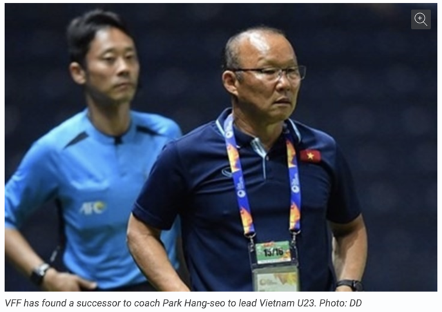 베트남 일간 <라오동>은 18일(한국 시간) “베트남축구연맹(VFF)이 베트남 U-23 대표팀을 이끄는 박항서 감독의 후임자를 찾았다. 곧 공식 발표가 있을 예정이다”라고 보도했다.