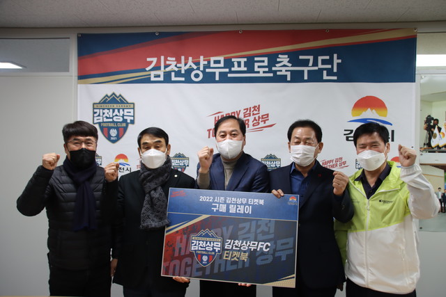 김천은 21일 오전 11시, 대표이사실에서 티켓북 구매 릴레이 행사를 열었다. 지난 18일 김충섭 구단주의 티켓북 구매를 시작으로 최한동 후원회장, 서정희 체육회장, 김재광 김천시 시설관리공단 이사장, 배낙호 김천상무 대표이사, 이흥실 단장이 티켓북 구매 릴레이에 동참했다. 김천시 내 고위 관계자 뿐 아니라 김천시민도 티켓북 구매에 열을 올린다는 후문이다.