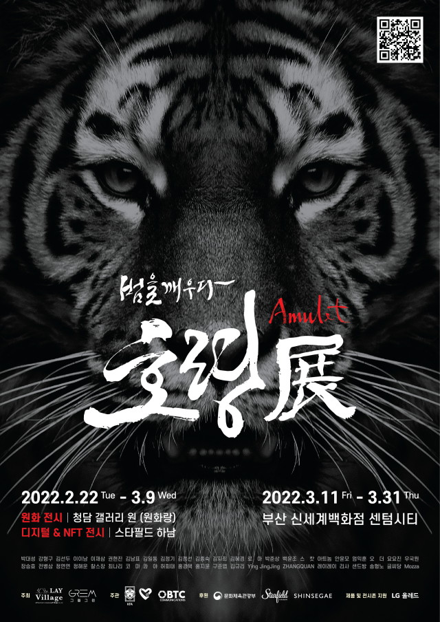예술작품전시 전문기획사 ‘레이빌리지’, ‘그림그린’과 공동으로 개최하는 이번 전시회의 명칭은 ‘Amulet-호령전-범을 깨우다’다. 국내 미술계를 이끄는 유명작가 38인이 참여해 그림을 통해 호랑이의 영험한 기운을 표현한다.