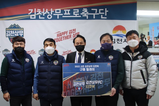 김천 상무는 23일부터 24일까지 대표이사실에서 티켓북 구매 릴레이 행사를 열었다. 23일에는 김윤수 김천시청 기획예산실장이, 24일에는 정용필 김천시 축구협회장, 윤성필 CNB국회방송 국장이 티켓북 구매 릴레이 행사에 참여했다.