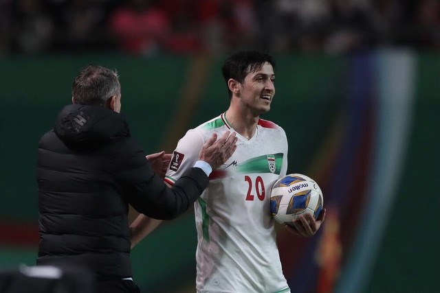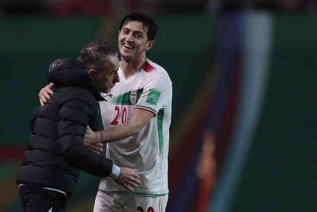 이란 매체가 이란 축구 국가대표팀 에이스 사르다르 아즈문과 파울루 벤투 한국 축구 국가대표팀 감독의 다정한 모습을 주목해 시선을 끈다.